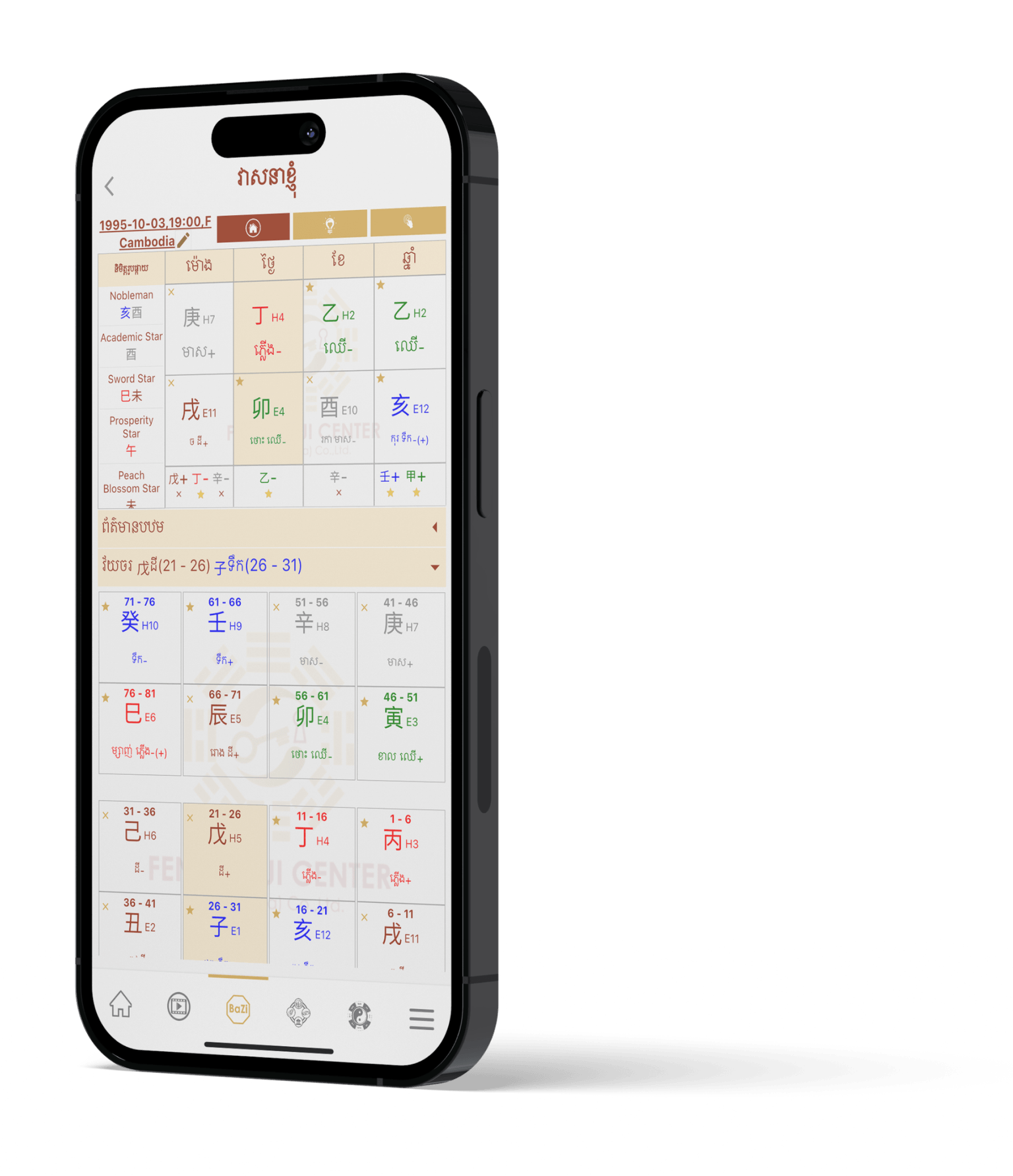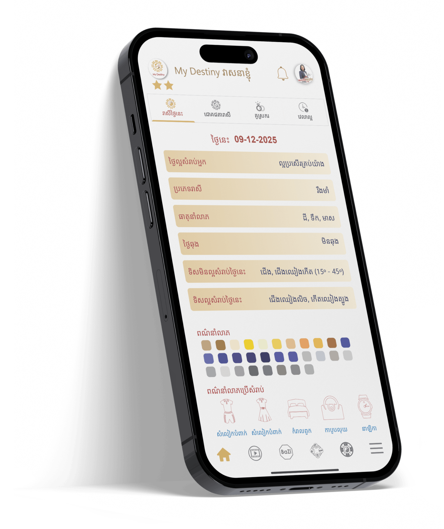 App My Destiny - វាសនាខ្ញុំ adheres to international standards by displaying a variety of Feng Shui and Bazi applicable and practical formulas available to be downloaded from the Play Store for Android users and the App Store for iOS device owners.
